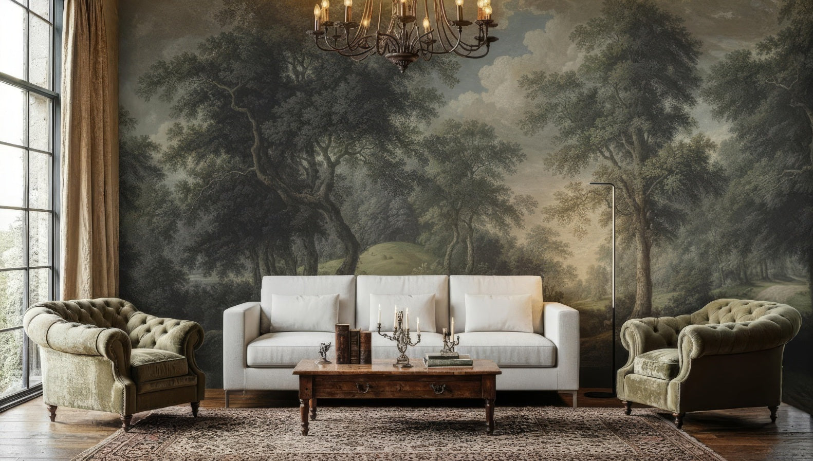 Vintage Botanical Trees Landscape Peel and Stick Wall Mural Wallpaper